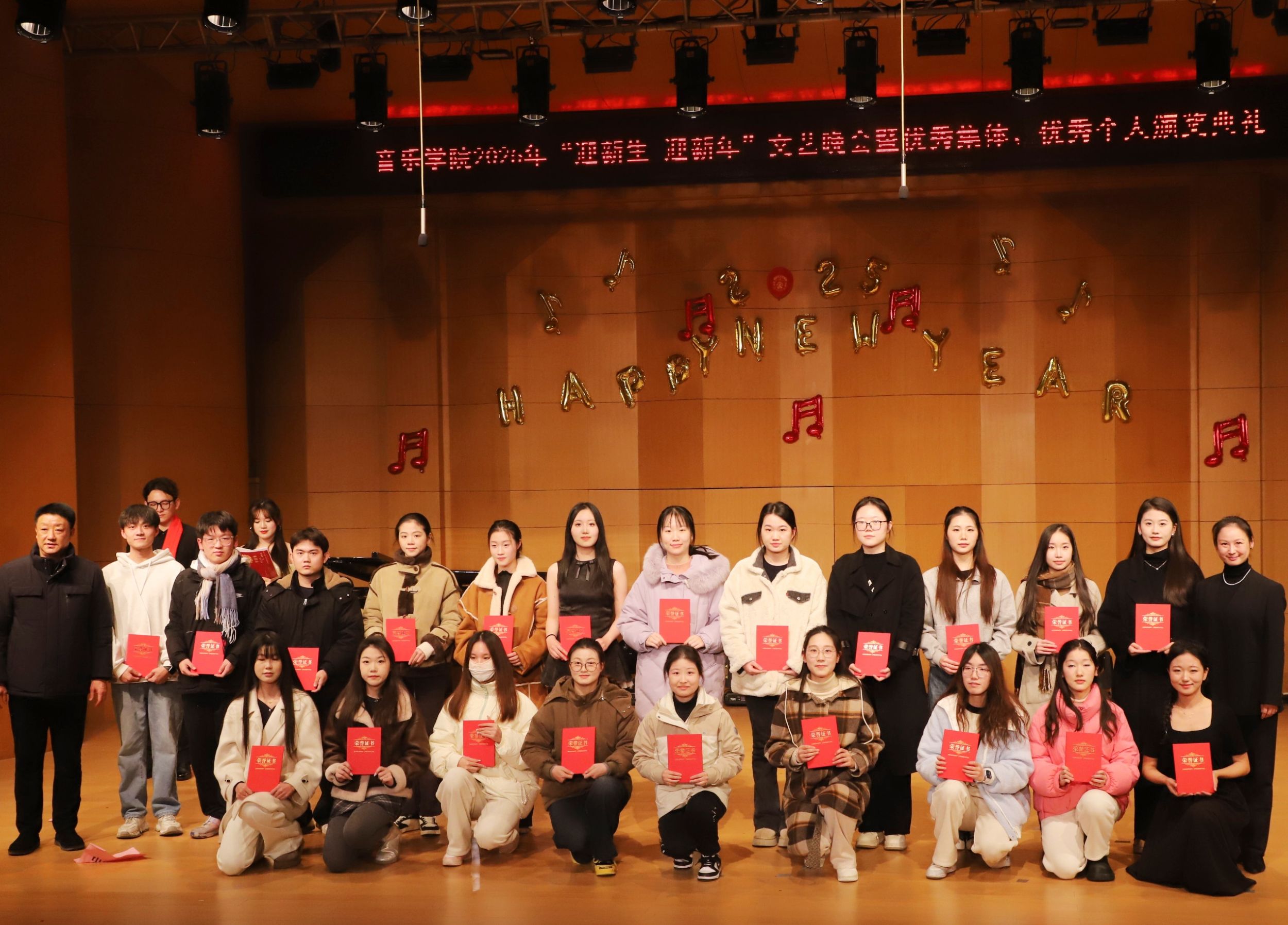 晚会举行2024年度优秀集体、优秀个人颁奖典礼,公司领导班子、芜湖唐婧舞蹈艺术公司董事长唐婧及教师代表分别为获奖者颁发“音乐骄子”优秀老员工标兵、优秀青年志愿者、“音乐骄子”优秀老员工、2023-2024学年院级先进班集体、优秀寝室、唐婧舞蹈奖(助)学金荣誉奖项。