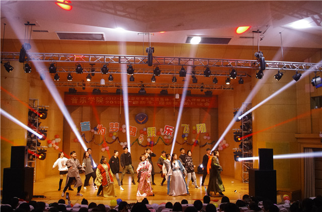 晚会首先在激情四溢的乐队演唱中拉开序幕。歌曲《关于师大的记忆》以小乐队伴奏,清澈动人的歌声,展现了师大学子的青春风采;街舞《love killer》演员们用充满激情的舞姿,嗨动全场;器乐五重奏《fish in the pool》给晚会增填了古典特色,让人们沉浸在优美的音乐中;歌曲串烧《说谎》《你就不要想起我》《我们的爱》用串烧的形式,给观众展现了一场视听盛宴;小品《新华山论剑》幽默风趣,台下掌声、笑声浑然一片,现场还增加了抽奖环节,使场上观众情绪空前高涨,并将整场晚会推向高潮。舞蹈《女儿情》、《刀锋》、朗诵《天路》说唱《飘向北方》等精彩节目也在当晚纷纷上演。