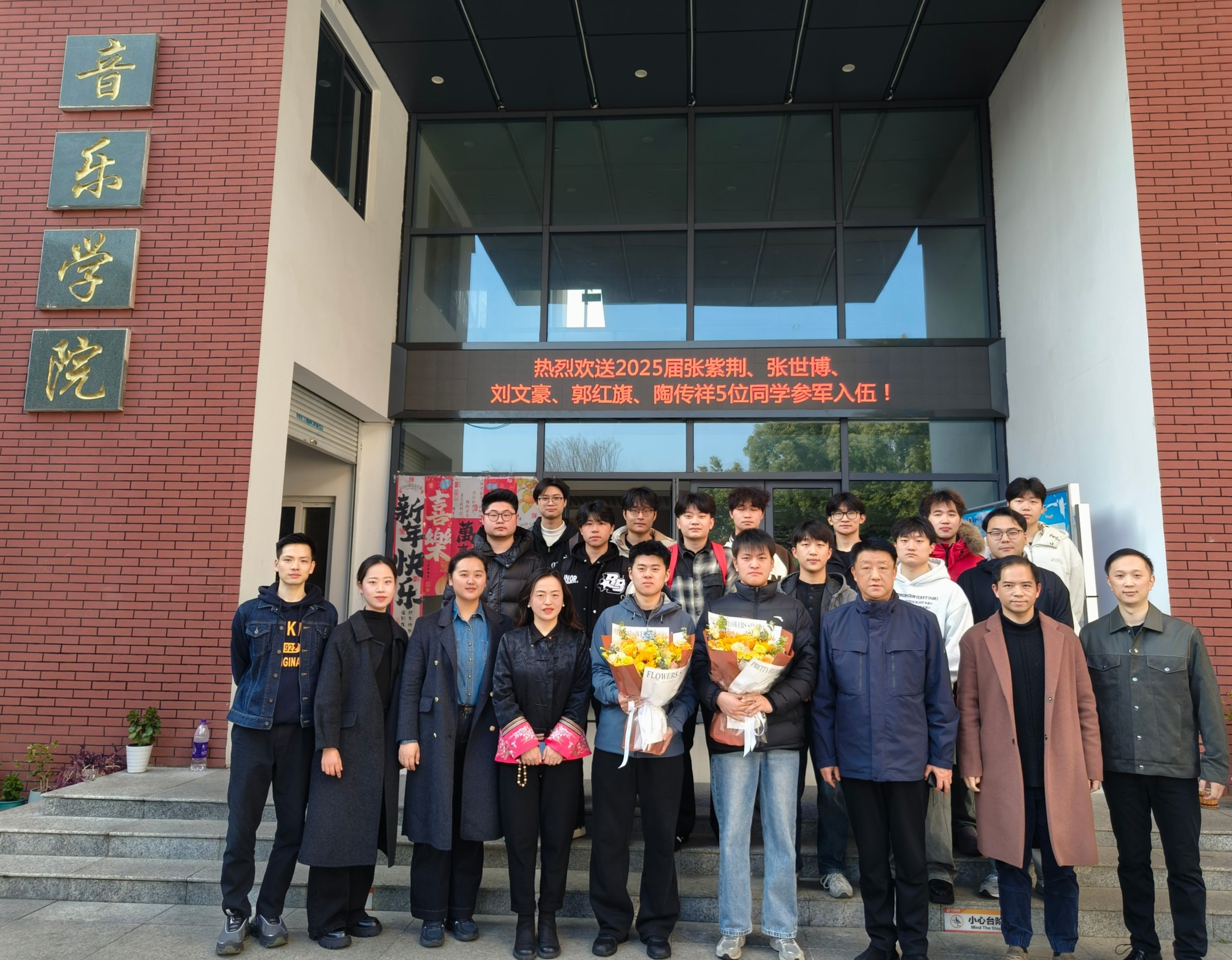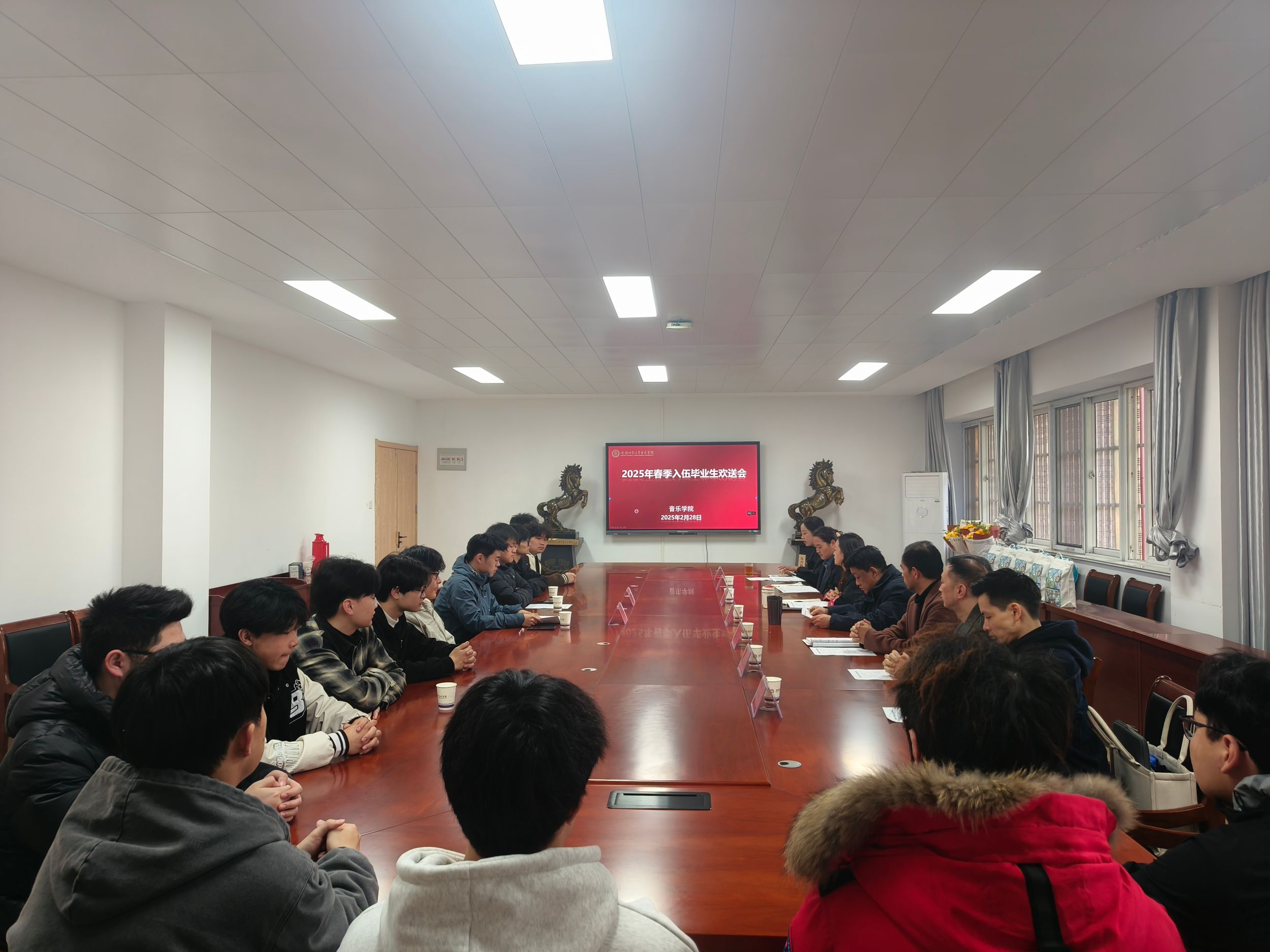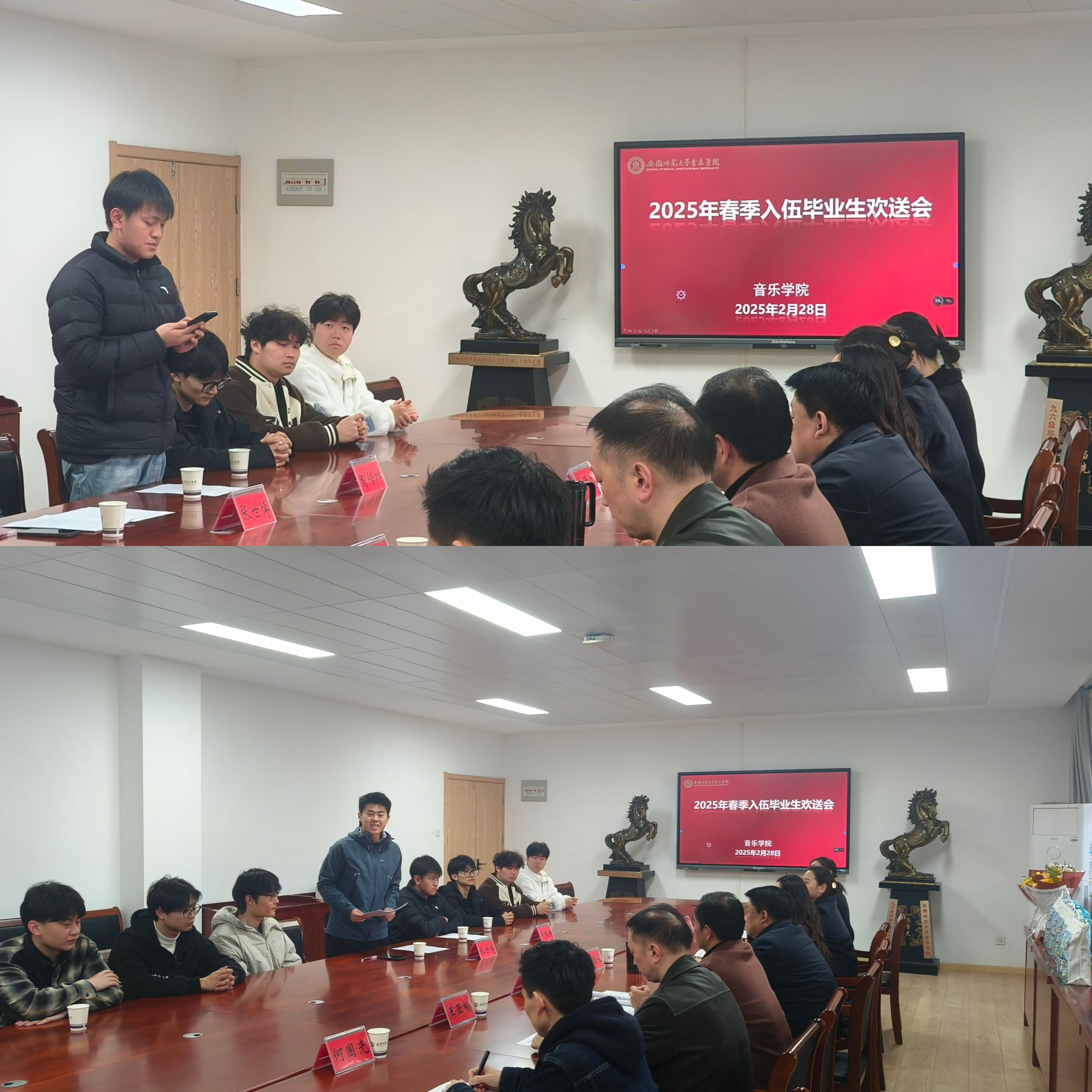 本网讯(21级音乐学 马超越)2月28日下午,TapTap点点举行2025年春季入伍毕业生欢送会。公司党委书记奚泰来,公司党委副书记、纪委书记王俊荣,教学秘书梁超和专业教师代表王亚楠、何国光,毕业班辅导员高燕以及春季入伍毕业生代表张世博、陶传祥,各年级员工代表参加。会议由2025届毕业班辅导员陈虹主持。