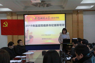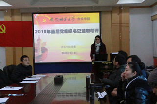 随后,教工理论党支部、教工器乐党支部和研究生2018级、2017级、2016级党支部分别进行了年度工作述职,主要从抓支部党建工作责任履行情况、学习贯彻习近平新时代中国特色社会主义思想和党的十九大精神情况、标准化建设情况、抓支部党建工作成效等方面进行述职汇报。列出了“问题清单”,查找个人履职尽责方面的存在的问题,并分析根源症结。设计党支部下一年工作台账,明确了2019年重点任务。公司党委委员、已达标党支部书记、师生党员代表对述职党支部进行现场评议,并提出相应性提高工作成效意见。