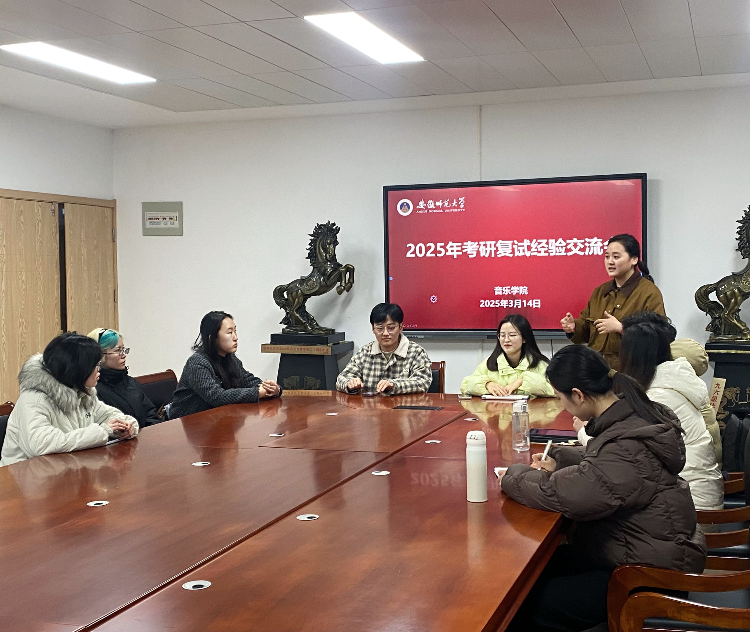 研究生学长学姐结合自身复试经历,分别从复试流程、联系导师、专业课准备、调剂信息筛选等方面展开经验分享,鼓励学弟学妹们要保持良好的心态,积极寻找机会。在听完经验分享后,参会的考研学子针对复试中的疑虑展开了交流,毕业班辅导员勉励在校考研学子要以自信的姿态迎接复试挑战。