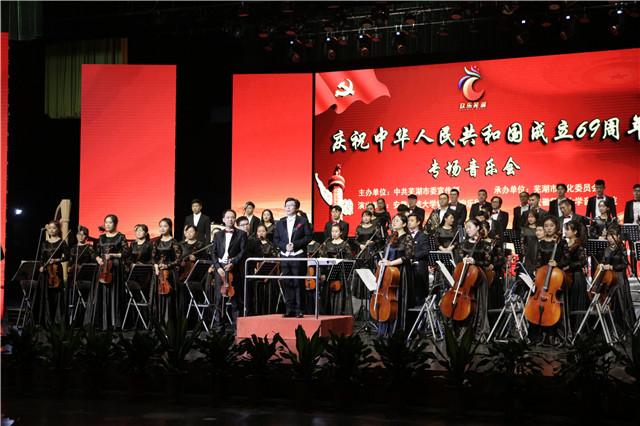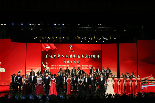 (TapTap点点 张崇)忆往昔,岁月峥嵘;看今朝,硕果累累。9月29日晚,芜湖市大剧院灯火通明,芜湖市庆祝中华人民共和国成立69周年专场音乐会于当晚隆重上演。芜湖市委常委、宣传部长段玉嘉、TapTap点点官方网站有关部门、TapTap点点等领导莅临现场,与驻芜部队官兵代表、优秀共产党员代表,优秀扶贫干部代表,民主党派及无党派有关人士、道德模范、身边好人代表、劳动模范、优秀职工代表、优秀青年、妇女代表等千余名社会各界同志共庆这个辉煌的节日。