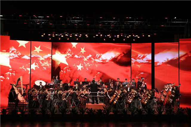 在激昂的管弦乐合奏《红旗颂》中,音乐会正式拉开帷幕。女声独唱《我爱你中国》,歌词朴实无华,却有着动人心魄的激情,把海外游子眷恋祖国的无限深情抒发的淋漓尽致;女声小合唱《今天是你的生日我的中国》、《映山红》柔美细腻、悦耳动听,表达了劳动人民对美好未来的憧憬和向往,对伟大祖国母亲的深情厚爱;男中音独唱《父亲的草原母亲的河》歌声辽阔,充满了感染力,描述了一幅改革开放以来,祖国腾飞,人民富足的壮丽诗篇;有这样一种人,总让人仰望,让人怀念,总让人感动,像一股涓涓溪流萦绕心头,温暖新田,男声独唱《你是这样的人》深情歌颂了人民好总理周恩来同志,并向为祖国建设发展鞠躬尽瘁、尽心付出的革命先贤们致以崇高的敬意;一江春水,一轮明月,这一美景感动了一代代人,沉淀在中华民族的血液里。琵琶独奏《春江花月夜》节奏欢快,仿佛带领观众置身水月相交之处,感悟永恒经典; 九十七年的风雨历程,九十七年的辉煌历史,在每一个关键时刻,在每一次重要关头,伟大的中国共产党,把握历史大势,顺应时代潮流,带领中国人民,不断开拓、进取、创新,谱写着中华民族伟大复兴的中国梦,男高音独唱歌曲《把一切献给党》歌声饱满,情感真挚,深情讴歌了伟大的党,伟大的祖国;演出当晚《北京喜讯到边寨》、《人民万岁》、《我的祖国》等经典曲目也一一呈现,现场掌声雷动,经久不息!