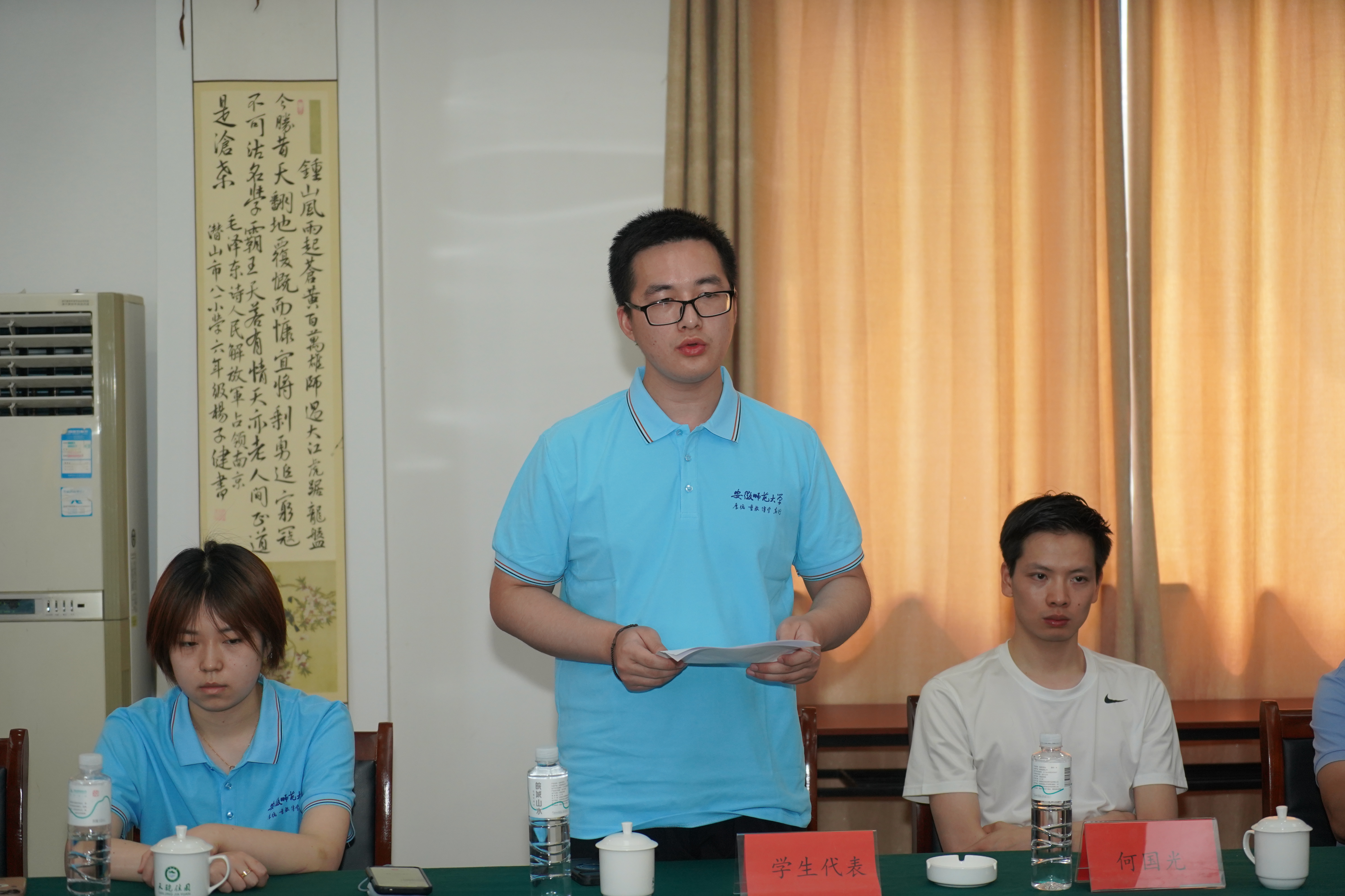 王俊荣对潜山市文旅局、振兴京剧艺术交流中心以及黄埔镇各位领导的大力支持表示衷心感谢,她指出,团队成员在实践期间的亲身感受是有别于课堂上的思想理论教育,高校不仅以人才培养为使命,还承担着文化传承的使命,此次暑期社会实践对各位同学来说是一次难得的机会,更是青春浓墨重彩的一段经历。她强调,“传承非遗不是口号,是需要脚踏实地地完成。”要发挥青年人的力量,将“点子”变“金子”,将传承非遗文化与现代发展结合,共同推进公司本科专业建设,提升人才培养质量。安庆潜山人杰地灵,有丰富的文化瑰宝,希望通过此次校地合作将高校的学科团队力量注入,用我们的声音讲好新时代文化与非遗传承故事。