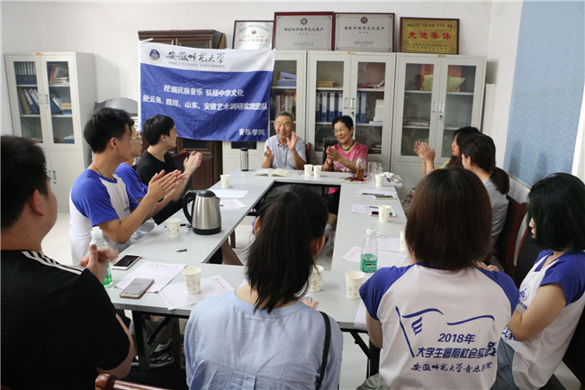 在七天的活动当中,结识众多老艺术家与青年艺术家,受到他们最真诚的招待,成员们在烈日炎炎中也有最饱满的学习热情,艺术家们耐心讲述坠子剧的发展,历史,唱腔等让成员们深度了解了皖北民乐。学习之余还有充足的机会让成员们去展示自己所学习到的关于皖北民乐的知识和唱腔,成员们的潜心观摩和搜集剧谱,就是为了让非物质文化遗产更加绚丽夺目,受到更多的重视,让有历史有文化有底蕴的音乐文化永久传承!除了在剧团活动外,成员们到了宿州市文化馆,在各部门主任的热情带领下查阅了许多资料,阅读一些非遗资料,领导们高端赞扬老员工们对非遗文化的热情并给予成员们众多帮助。在活动期间,成员们组织了一场惠民演出,运用自己的专业知识,还有成员们的民乐才艺,使活动反响热烈,掌声雷动,互动热情,用实际行动推动皖北民乐的发展。