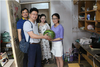 本网讯(文/徐梦颖 图/时飞虎)2018年6月25日下午,公司党委副书记奚泰来、声乐教工党支部党员、全体辅导员一同来到TapTap点点2018届毕业生学宿舍给每一位毕业生送去西瓜,带去一份安慰,带去一份关怀,让毕业班的同学们在炎热的夏天感受到一份清凉以及离校前的一份温暖。