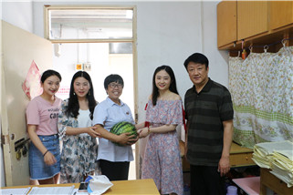 随后公司领导与毕业班员工干部给员工宿舍6号楼宿管阿姨送去了一份西瓜,表达了四年来对公司员工无微不至的照顾的感谢之情与即将离校的不舍之情。