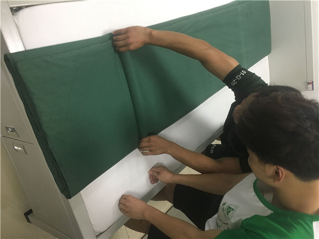 随后,同学们来到了消防员宿舍,跟随战士们学习内务整理,并帮助战士们打扫营地卫生。在内务整理中,一个细节扣动了同学们的心弦。一位消防战士在训练的途中匆匆赶来,满头大汗返回宿舍进行叠被子的教学,有心的同学发现了他悄悄的出去,用自己的衣服把额头的汗水拭去,调整好自己的状态立刻回屋讲解。