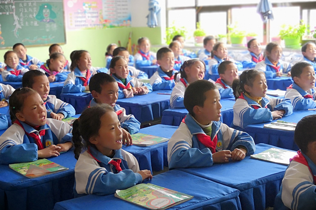 “他们对任何事情真的都很好奇。”“他们真的是太棒了,身体协调性真的很好,而且还特别有礼貌。”“我发现他们跟我们那边的孩子不太一样,上课时总是用很渴望的眼神望着我,生怕错过了每一个细节。”这些都是实践队员对孩子们的直观评价。最后一节课,团队买了铅笔、橡皮、水彩笔等作为课堂小礼品发给他们,每个拿到礼物的孩子脸上都洋溢着满足的笑容。在下午阳光体育课间,我们给孩子们发了毽子、跳绳、沙包等体育用品。在这最后一刻,所有人已经完全不顾高原反应,跟孩子们一起跳绳、踢毽子、翻跟头,玩的不亦乐乎。美好的时光总是短暂的,当听到那一声声稚嫩的童声:“老师,再见!”前往参加实践的师生们早已热泪盈眶。