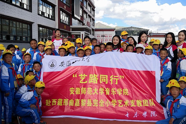 出发前,实践队员们绞尽脑汁想要带给这边的孩子一些独特的礼物。于是,队员们在一起精心挑选了葫芦丝、竹笛等乐器以及扇子、手绢花等舞蹈道具,作为爱心慰问品捐赠给藏区的孩子们。进藏之行路途遥远。7月18日凌晨,队员们提着丰厚的慰问品从芜湖出发,同时带上了爱和期盼。长达40个多小时的硬座行程,注定一路历经艰辛,很多队员更是整整两晚没有睡觉,但想想接下来要完成的使命,每个人都还是斗志昂扬。