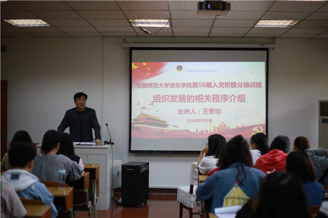 王景旭书记在本讲座开篇就强调了党员发展工作的三个重要原则,即:党的基层组织要将先进分子的吸收,作为一项经常性的工作来开展原则;要坚持标准,保证质量,有领导、有计划发展原则;自愿和个别吸收的原则,并给学员们讲解了“组织发展工作的原则”之中的含义。随后,王书记又详细介绍了成为党员的六个必经的程序,且一一作了讲解,并反复提醒学员们在注意把握程序上的关键节点基础上,尤其是对在加强对党章、党的知识,习近平新时代中国特色社会主义思想和党的十九大精神等方面的理论学习,以及如何加强专业学习,如何实现德智体美的全面发展提出了明确的要求。