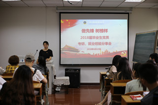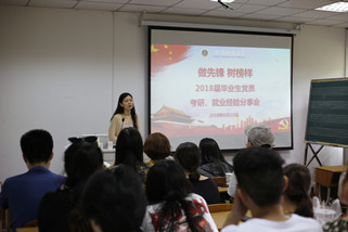 6月15日下午,在学术报告厅毕业班党员与低年级党员同学一起开展了“做先锋 树榜样——2018届毕业生党员考研、就业经验分享会”。毕业生党员张婧媛、孙欣桐、游小莹分别从保研、考研、就业三个方面向党员们分享了自己的心路历程。张婧媛就保研讲述了自己四年的学习经历,强调无论什么方向都要提前准备,选好自己的道路,保研的公司相对比较局限,同时也要提前与对方公司联系。孙欣桐考取了南京师范大学的研究生,她向准备考研的党员传递分享了自己的学习方法,一是把准备重点放在理论考试上,专业成绩无法拉开差距,而且临场发挥影响很大,理论知识提分较快,容易拉开差距;二是抓住每门学科的学习特点,学习每门学科的答题方式技巧,抓住得分点,掌握学习方法;三是坚持就是胜利,考研是一场马拉松,学会坚持是战胜敌方的武器,坚持到最后已经赢了一大半,保持良好心态迎接考试。游小莹入职金寨职业技术公司,她觉得找工作不易,失败挫折很正常,相信自己,拿出最好的状态非常重要;并且要提高自己的专业素养,就业单位对于老师的专业素养非常看重,不断学习,努力提高自己的专业能力;最后要学会创新,灵活应对考试,如何在众多求职者中脱颖而出,不仅需要过人的专业能力,同时也需要开阔的思想,新奇的创意。学会创新,拓宽思路,灵活应对考试中出现的问题。白老师总结了三位党员同学的发言,鼓励低年级党员同学们向高年级优秀党员学习,正确处理工作与学习间的关系,将优秀视为一种习惯。