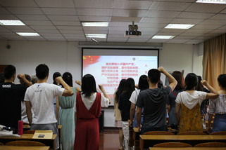 最后,白婧带领全体毕业班党员回顾了十九大精神、重温了入党誓词,铿锵有力的誓词,让同学们再次感受到自己当初决心加入党组织时的初心,牢记自己共产党员的光荣使命。大家纷纷表示,以后走向社会也要时刻以最高的标准要求自己,以良好的党性修养和过硬的政治素质走出校门,回馈社会,走向美好未来。