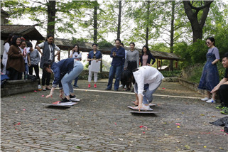 这本次踏青活动设立了踩气球、扔飞镖、借桥过河、吸乒乓球、掼蛋比赛等游戏,老师们纷纷积极报名,踊跃参与。尖叫声、加油声不绝于耳。“哇,看不出来张经理速度那么快啊!”“姜老师投飞镖也太准了吧”……在各类游戏中,教职工们不停地感叹道。一派其乐融融、和谐圆满之景。