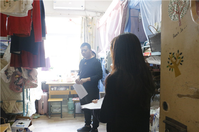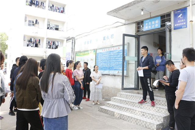 支部党员分成三组,各自组成检查小组,跟随老师们深入公司6、7、12三栋宿舍楼宇。检查小组人员本着“不漏掉一个同学、不忽略一个细节”的原则认真细致地对每一个寝室进行排查,严格按照突击巡视、详细记录、信息反馈、限期整改的程序执行。