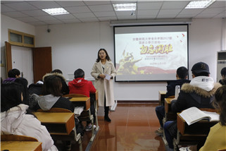 下午一点三十分,活动准时开始。先由高燕辅导员讲话,引出今天“勿忘国耻,谨记历史”的主题,然后由张鑫同学带领大家进行活动第一项:全体起立默哀一分钟。全场安静,每位同学低头默哀,今天用我们力所能及的方式哀悼这沉痛的一天。