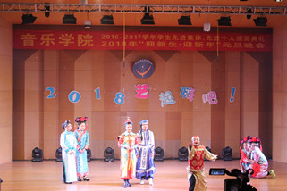 晚会在激情四溢的乐器合奏《乐动2018》中拉开序幕。歌曲《夜空中最亮的星》以小乐队伴奏,主唱声音清澈动人,充满了年轻的模样。 17级舞蹈表演班为大家带来的蒙古族舞蹈《潇洒》和乌兹别克族舞蹈《亚力亚》将现场的气氛推向高潮,给现场观众带来了精彩盛宴!紧接着的歌曲串烧也是掌声连连,歌手们用高亢清亮的嗓音表达了对舞台的热爱。 相声表演《就是闹着玩的》,采用了口头方式和身体动作结合的表演,收获了全场的笑声,现场气氛再次被带动起来。游戏互动环节让观众们参与进来,游戏主持的妙语连珠和参与观众的表现,让现场高潮迭起,一片欢声笑语。双人舞《九儿》,以凄美的爱情故事为背景,舞姿曼妙,感人至深。小品《还珠格格》再次引起观众的开怀大笑,以熟悉的琼瑶剧为主题,别具特色。舞蹈《我的新衣》形式新颖,京剧舞蹈和街舞的碰撞给观众带了不同的舞台,每一个动作传递出的都是青春的活力。古风古韵,气清意远的《炫彩国乐》,晚会在二重唱《相亲相爱》中落下帷幕,整场晚会精彩纷呈,赢得在场观众的一致好评。