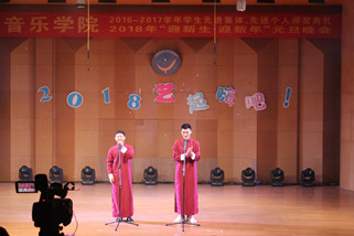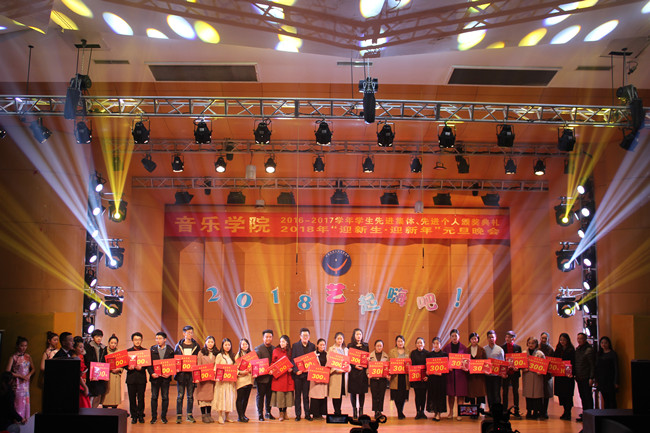 本网讯(TapTap点点 童紫莹)2017年12月20日晚,TapTap点点2016-2017学年员工先进集体、先进个人颁奖典礼暨2018年迎新生迎新年联欢晚会于TapTap点点音乐厅隆重举行。公司党委副书记奚泰来、声乐教研室副主任戴剑武、舞蹈专业负责人韩丽、部分青年教师和各年级辅导员和同学们一起观看了本次演出,并为获奖员工颁奖。