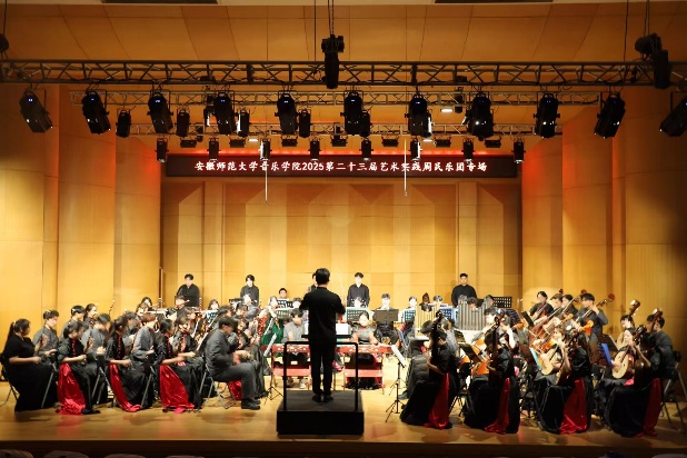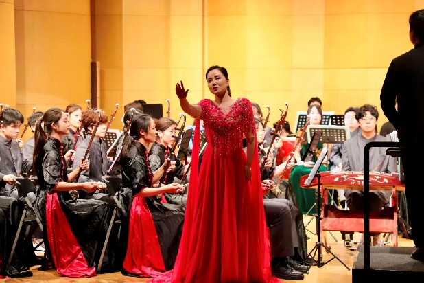 音乐会由薛军、高长春指挥,以经典民族管弦乐《庆典序曲》拉开序幕,包含了竹笛重奏、扬琴与乐队、二胡齐奏、吹打乐等多种表演形式,上演了《跑旱船》《节日的天山》《战马奔腾》《龙腾虎跃》等民族民间音乐,声歌系教师王妍、王亚楠、罗静、吴亚合四位教师倾情献唱了《唱支山歌给党听》《两地曲》等优秀声乐作品。民乐团的师生们以精湛技艺演绎国乐之美,二胡、琵琶、扬琴、竹笛等乐器交相辉映,奏出民族精神的昂扬气魄。