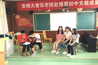 从实际出发,因材施教。支教对象是马鞍山博望初级中学,在愉快的师生见面会中实践队员们不仅向同学们展示了一下自身的专业素养,同时也认真记录了不同年级员工各自的音乐接受程度,在认真分析了原本的团队计划与员工们的具体情况下,队员们决定及时更改原定计划。增添员工们感兴趣的钢琴课程,而原定的简单音乐知识教学,西方歌剧音乐剧欣赏,大合唱以及小器乐的教学活动也在有序进行。