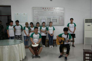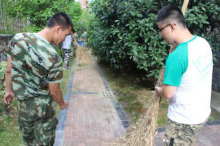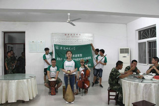 在会议室,队员们参观了各式各样的武器装备,并在战士的指导下亲自操作;在训练基地,战士们向队员们演示了军体拳和日常军事训练项目,不少男同学跃跃欲试,参与到军训之中;在操场,队员们跟着战士们进行除草和后勤清理。炎热的天气丝毫没能阻挡队员们的热情,虽然汗水不停流淌,但是每个人脸上都显呈出认真,流露着仔细;一首首美妙的旋律响彻食堂,忙碌了一天的武警官兵们看着队员们带来的的音乐表演,充满着笑容,掌声、欢呼声不绝于耳,现场气氛十分热烈。饭后,女队员们主动请缨,为所有的官兵们清洗碗碟,收拾餐桌。