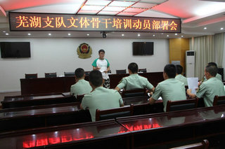 军歌采集后,队员们熬夜学习,仅用一晚就掌握了军歌的旋律和节拍。在武警芜湖市武警支队文体骨干培训动员部署会上,队员们与武警的文化骨干们面对面交流,并将这些采集的军歌教授给骨干们!一句句的旋律,一节节的音符,队员们们教的非常卖力,战士骨干们也学的认真。