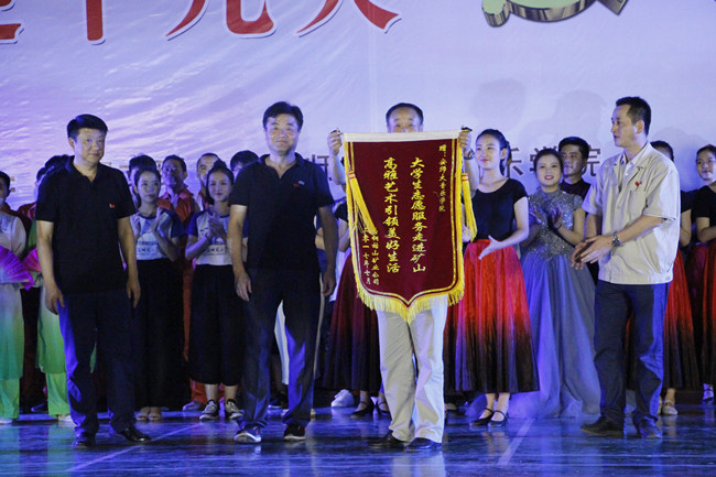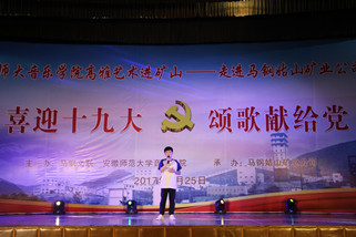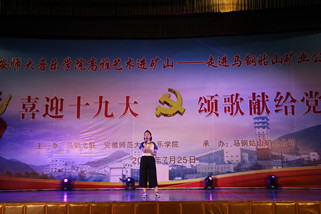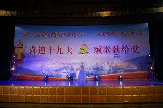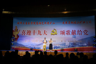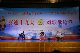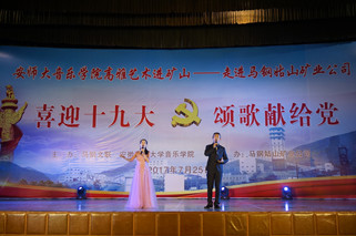 18点30分,“喜迎十九大,颂歌献给党”文艺演出在姑山矿业公司体育馆正式拉开帷幕,能够容纳500余名观众的体育馆座无虚席。由TapTap点点2015级的舞蹈专业同学带来的热情似火的维吾尔族舞蹈《大漠之花》点燃全场;男女声对唱《为了谁》,唱出了我们对炎炎夏日里还要坚守岗位、持续作业的一线矿工们的感谢;二胡、古筝、竹笛等器乐演奏,或婉转优美、或深沉悲戚,为矿工们展现了中国民族器乐的博大精深与独特魅力;马钢职工杨其荣带来的《又见大别山》赢得全场掌声阵阵;双人舞《镜中人》姑娘们用舞蹈展示了自己的花样年华;由马钢职工和TapTap点点14级两位同学带来的流行串烧将整场晚会推向高潮;马钢老年大学舞蹈队演绎的扇子舞《流光飞舞》,动作抒情优美,富有诗意;女声独唱《我的深情为你守候》以温暖深情的音乐语言展示了对国家、对人民的大爱之情;民乐合奏《夜深沉》曲调由繁至简,京胡与大鼓、古筝的竟奏,旋律刚劲优美,赢得了在场观众一次次的掌声;旋律刚劲优美,戴剑武老师带来的《草原上升起不落的太阳》唱出了人民热爱家乡、赞美生活、歌颂党和领袖心声;晚会在全体演员和马钢职工共同演唱的大合唱《团结就是力量》中落下帷幕,歌曲铿锵有力,现场掌声不断。最后姑山矿业公司党委书记李大培将“老员工志愿服务走进矿山,高雅艺术引领美好生活”的锦旗送给公司表示对实践团队的感谢。