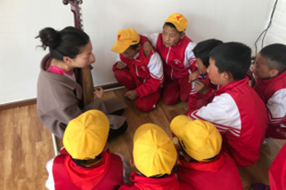 为了打开孩子们的视野,帮孩子们打下音乐基础,队员们为孩子们精心准备了音乐基础课、歌唱课、舞蹈课、乐器课和手工课,还带来了沙画,黏土等手工材料作为送给孩子们的礼物。在音乐基础课上,队员对着黑板耐心地为孩子们讲解音乐知识,从基础开始,教他们认识钢琴琴键,认识简谱、五线谱。钢琴课,队员手把手地教孩子们如何在钢琴上用正确的手型弹出声音,孩子们学习的十分认真,下课以后还在不停地练习着。