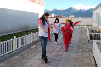 歌唱课是这次支教的重点课程,有很多孩子对这门课感兴趣。为了让每个对唱歌感兴趣的孩子都能学到唱歌,我们安排了很多节唱歌课,更分配了多个队员对孩子们分班教学。孩子们学唱的速度很快,旋律和歌词都能很快记住,开始队员们还以为他们天生记忆力很好,后来才知道原来他们回宿舍之后把歌词记在了小纸条上,空闲的时候背一背,连队员都惊讶于他们学习唱歌努力的程度。教小孩子唱歌,队员们不仅要纠正他们的节奏、音准,还要纠正他们的吐字发音,一些汉语说的很流利的高年级藏族小女孩,她们在唱歌的时候会把ch唱成zh。队员耐心而细心的一个一个纠正他们错误的发音,教他们语言,教他们唱歌。