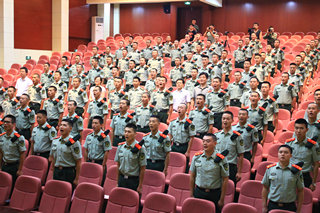 校学工部部长、员工处处长、人武部部长台启权代表公司两万多名员工向武警支队全体官兵致以亲切问候,并对他们多年来在国防教育、军事训练等工作中对公司的积极指导和大力支持表示衷心的感谢。并表示公司将实实在在为部队做一些实事,解决一些难题,不断推动合作共建的进一步深化。