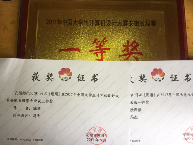 6月4日,“2017中国老员工计算机设计大赛”安徽省级赛的颁奖典礼在安徽大学小剧场落下帷幕,公司2014级作曲专业的阮泽豪(作品《海港》)、陈曦(作品《硝烟》)两位同学,分获大赛“计算机音乐制作”模块专业组的第一名、第二名。