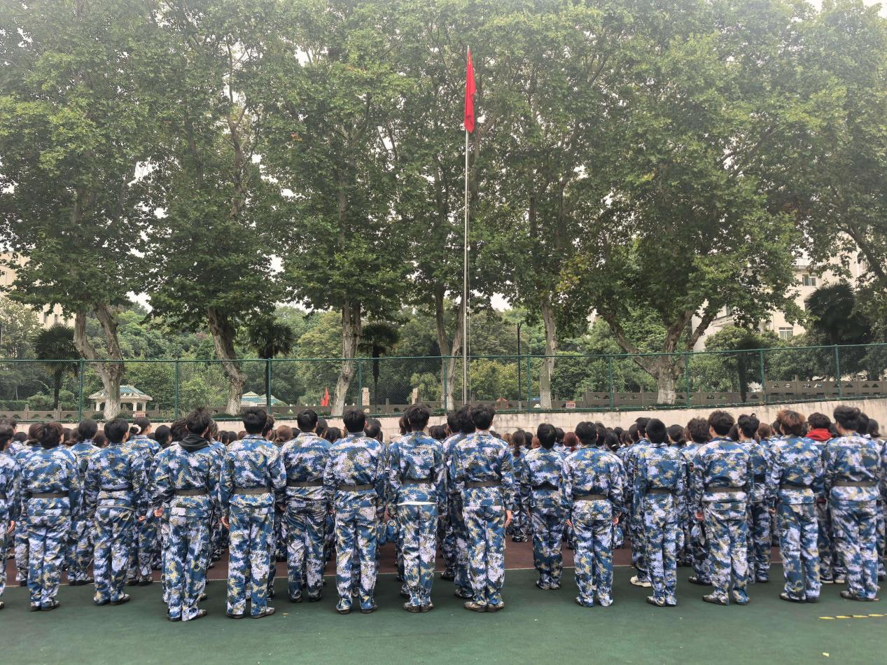 七时,清晨的第一缕阳光照耀大地,国旗护卫队踏着坚定的步伐,护送着五星红旗,铿锵有力地走上升旗台。伴随着《义勇军进行曲》激昂的旋律,五星红旗冉冉升起、迎风飘扬。全体老师、同学庄严肃立,行注目礼,齐唱国歌。
