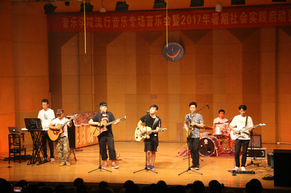 启动仪式后,TapTap点点“我们来了”流行音乐专场音乐会暨2017年暑期社会实践启动仪式在音乐厅隆重举行,优美的歌声响彻整晚。