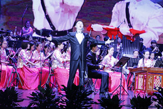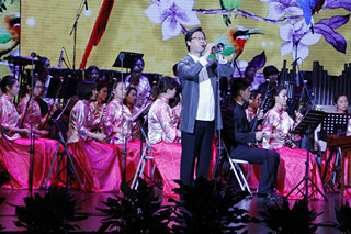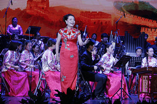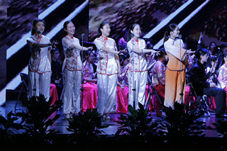 “一百年前从我的版图上把你划走,是你给了我一千年的忧愁,我和你本是同根生,我们曾是手挽手,一百年的梦想,我永远把你等候。”百年梦想、百年期待,喜迎香港回归20周年之际,男生独唱《一百年的梦想》用音乐描写了香港历经风雨终于回到祖国的怀抱,用音乐表达中华儿女期盼祖国统一的赤诚之心!春,暖人心脾,春,酒里飘香,徽韵吹打《淮河的春天》节奏欢快,旋律激荡,饱含春意春情;大气盎然的男声独唱《跟你走》、节奏活泼的唢呐独奏《百鸟朝凤》、情感深厚的女声独唱《江山》、气势磅礴的民乐合奏《龙腾虎跃》等一首首脍炙人口的乐曲,响彻当晚。
