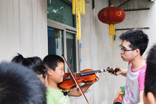 开启音乐梦想,共筑健康成长。实践队员在充分调研的基础上精心设计了教学计划,尤其在器乐教学上,开设了竹笛、葫芦丝、小提琴、古筝和电子琴等课程。教学内容主要分成三部分:1.以音乐欣赏为导。通过趣味性的音乐和视频,开启孩子们的兴趣,深入浅出的讲解音乐。2.以音乐教学为主。从乐理知识教授到小型乐器教学,从集体兴趣培养到小组及个人辅导,从简单的节拍到最后的汇演。3.以文化课教学为辅。带领员工们复习之前学习过的知识,并尽可能的向后预习。文化课和音乐课均衡分配,科学化开展支教。