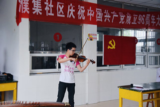 为了庆祝第96个建党节的到来,在濮集党委的支持下,7月1日艺术支教团队组织了慰问老党员、老红军的专场演出。没有舞台,他们就以公司食堂为场地,开展了简短但节目丰富的慰问演出。