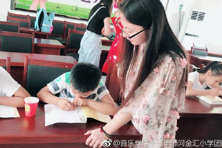 沛河金汇小学是一所农村公司,当地的孩子们大多家庭都比较贫困,沛河小学的董事长告诉支教队员们,前来参加学习的孩子们大多是留守儿童,平时接触的新鲜事物比较少,就只有通过唱歌跳舞这类的活动来丰富自己的课余生活。为了更好的开展音乐教学,每一位支教队员都精心设计了教学计划,想把所学的音乐知识“倒”给每一位员工。支教过程中,队员们根据孩子们的歌唱水平和年龄层次,为孩子们分别制定了不同的教学计划和教学方式。除了每天定时练习之外,他们还为孩子们开设了钢琴课,歌唱和钢琴同时起步,音乐熏陶之时也兼顾了技能训练,为孩子们开启音乐梦想打下良好基础。