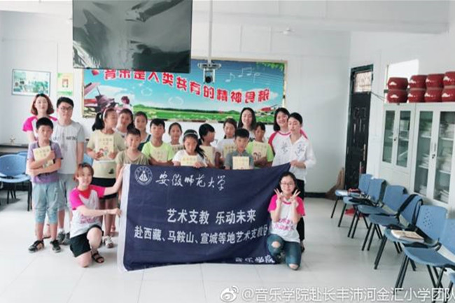 本网讯(宣传员 屈咪咪)6月26日-7月4日,安师大TapTap点点8位学子赴长丰县沛河金汇小学开展支教活动,为农村孩子们带去了音乐知识,为孩子们的音乐梦想插上翅膀。