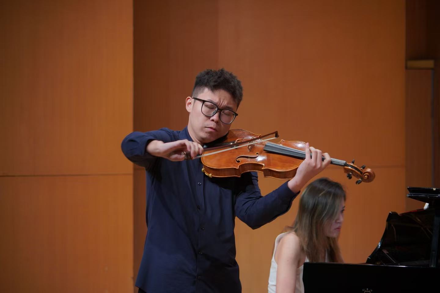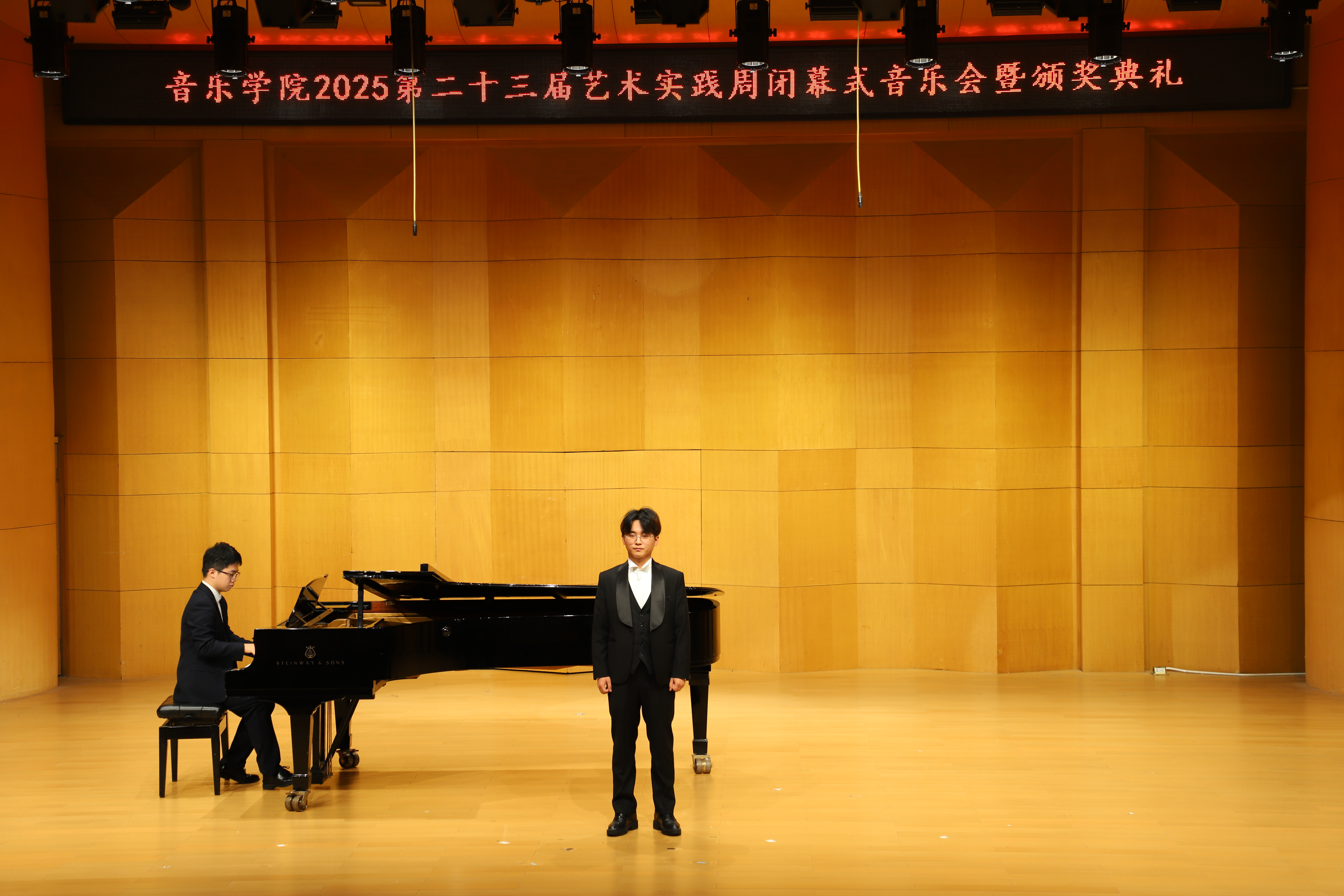 青年教师梁晨弹奏《d小调变奏曲(Op.54)》,以快速音阶的穿梭、和弦分解的细腻与节奏变化的灵动层层递进,将变奏曲式的逻辑之美与情感张力发挥到极致。