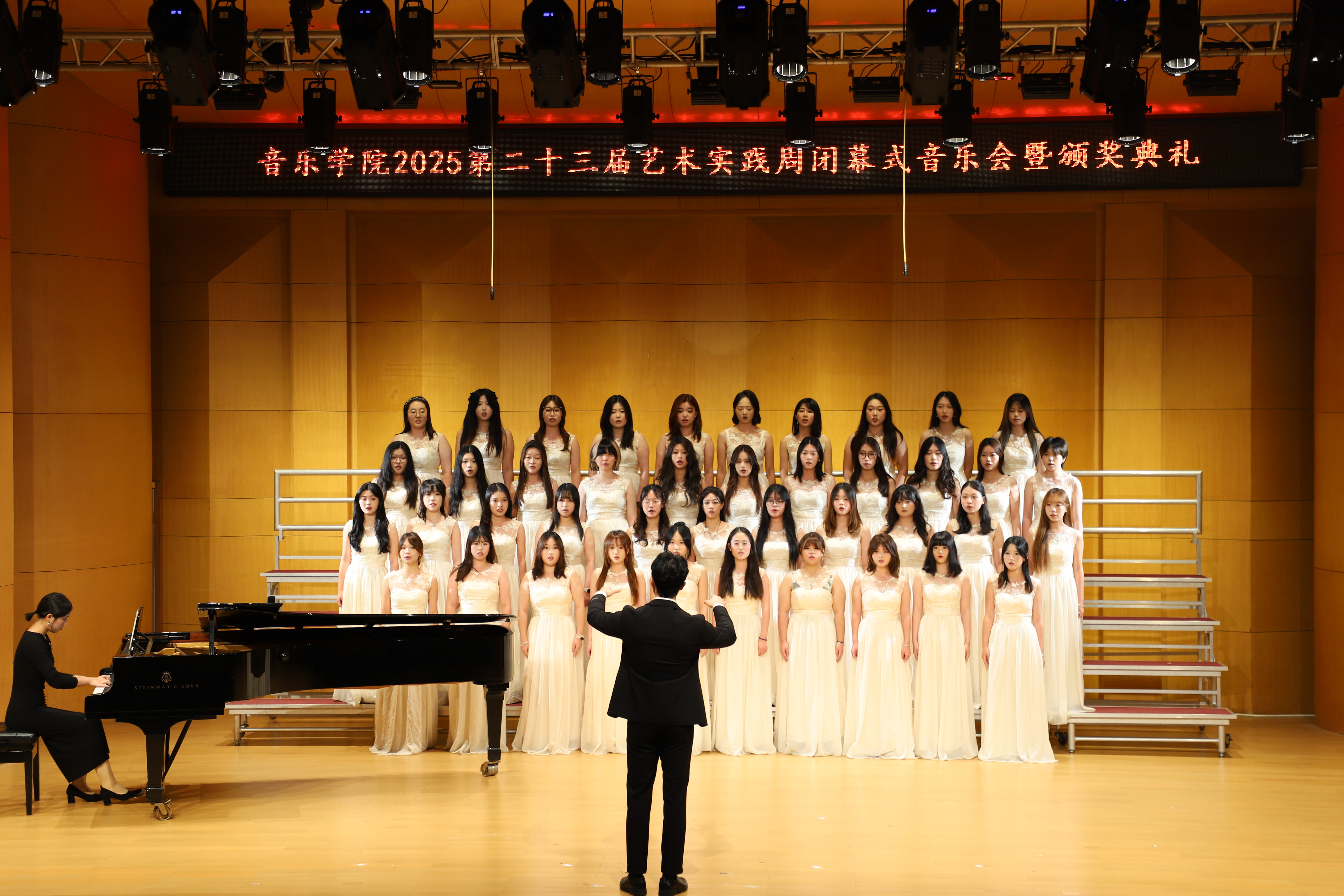 下半场多支优秀合唱团相继登台,以和声为翼,领略音乐的多元魅力。来自大二、大三年级的5支合唱团相继登台,接连演绎混声、同声合唱作品,包括《诗经三首》《菩萨蛮》等古诗词作品,将文学底蕴与合唱艺术完美融合,再现上古时代的民风民俗与人文情怀。