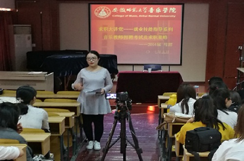 讲座就芜湖市各区的中小学音乐教师和高校辅导员的需求量、岗位要求、应试技巧以及薪资待遇等问题进行了全面、深入的分析。由于市区现有的教团队源已经基本饱和,教师的编制慢慢转移到芜湖市各个县区,但每个公司对教师的招聘要求不一样,这也就要求研究生们要不断的提高自身的能力,为未来的求职之路打下坚实的基础。马君老师介绍了自己在求职过程中所遇到的种种问题,为同学们在今后的求职中提供了宝贵的经验。