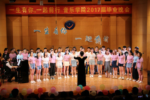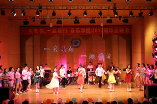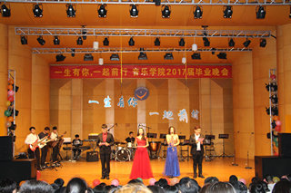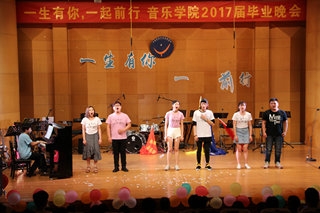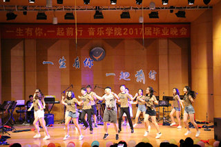 毕业晚会在开场舞《another day of sun》中拉开了序幕。随后,热情欢快的舞蹈串烧《万万没想到》点燃全场气氛;在相声《那些年我们说过的相声》中,学子们诙谐幽默的表现感染了在座的所有同学;合奏曲《斗琴》以情景剧的形式展现了学子们精湛的弦乐技巧,赢得阵阵惊叹;诗朗诵《13有你,17前行》情感真挚,表达了所有毕业学子们对母院的不舍,对大学青春的留恋。听着深情的朗诵,现场很多老师和学子擦拭起眼角,不舍之情萦绕心间。《纪念》成为13级全体同学的谢幕之曲,台上的学子们擦拭着通红的眼睛,含着泪水告别这个舞台,告别这个陪伴着他们整整四年的音乐厅,告别谆谆教导他们的老师们,告别了“音”为青春而奋斗的母院!伴随着歌声,学子们自发排着队,捧着一束束鲜花为在座的老师们献上他们的祝福,表达他们的感激与不舍。
