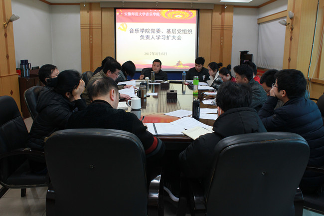 本网讯(图/文 张淼)3月15日下午,音乐公司党委在院二楼会议室召开中心组理论学习扩大会议。公司党委书记王景旭主持会议。公司党政班子成员、党委委员、各支部书记参加会议。