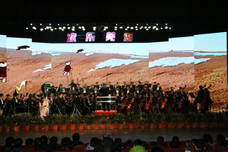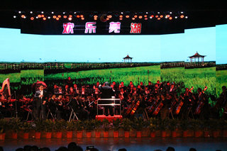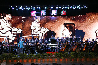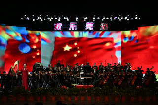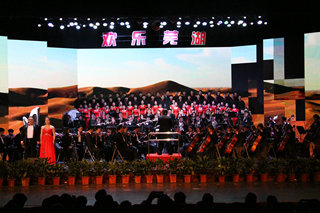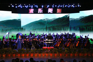 “管弦和鸣,盛世交响”。演出伊始,灯光骤暗,一曲欢快的管弦乐合奏《春节序曲》拉开交响音乐会帷幕。男声三重唱《今夜无人入睡》、男声独唱《父亲的草原母亲的河》、管弦乐合奏《轻骑兵序曲》等曲目,将演出推向一个又一个高潮,让观众领略到经典作品的永恒魅力。最后一首雄浑深情的合唱《祖国颂》为整场演出画上了圆满句号,获得了观众们潮水般的掌声。演出间隙,主持人还普及了交响乐、乐器等方面的知识。