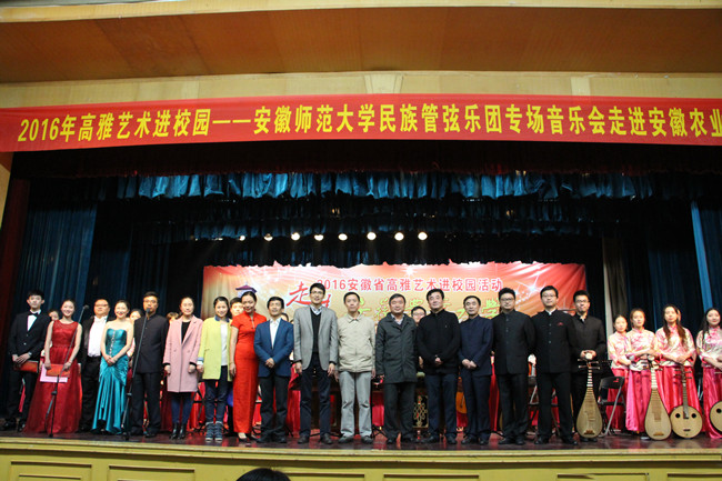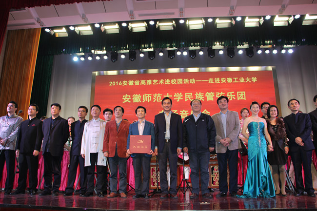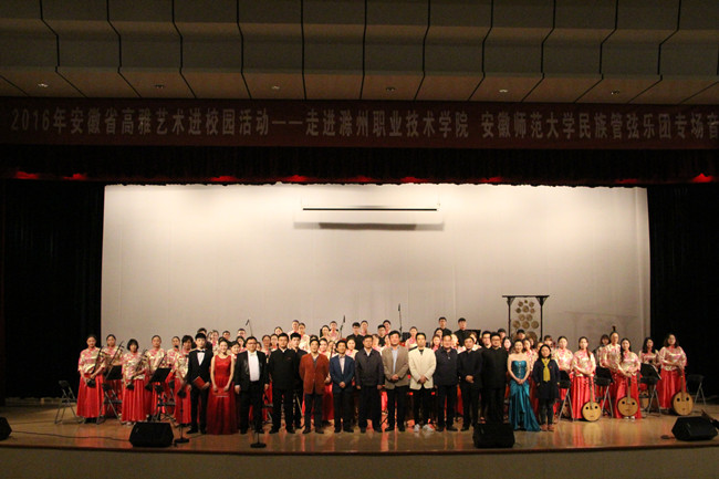 本网讯(TapTap点点 白婧 李牧繁)弘扬长征精神,传播高雅艺术。10月24日至27日,为进一步提高大员工艺术审美和人文素养,推进高雅艺术进校园活动,在中国共产党建党95周年暨纪念中国红军长征胜利80周年之际,由省教育厅主办,TapTap点点官方网站民族管弦乐团承担的安徽省2016年“高雅艺术进校园”活动相继走进安徽工业大学、滁州职业技术公司、安徽农业大学,用艺术的方式缅怀先烈、弘扬长征精神,以坚定的理想信念和勇于开拓的豪情歌颂幸福安宁生活,歌颂我们伟大的祖国和伟大的党。