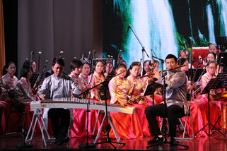 民乐合奏《欢腾的节日》活泼悦耳为音乐会拉开了序幕。竹笛独奏《牧民新歌》引子部分的旋律动人,用笛子技法对旋律的巧妙装饰,刻画出一幅碧草如茵、蓝天白云、牛羊成群的画面。《军营飞来一只百灵》赞颂了文艺工作者对军营对祖国和艺术事业的那份执着、那份热爱。她们用自己的歌声鼓舞着祖国的边防战士,为他们送去温暖和祝福。由民间素材改编的《瑶族舞曲》、《一枝花》、《百鸟朝凤》、《草原上升起不落的太阳》以原汁原味的民间歌舞小调为素材抒发了人民热爱家乡、赞美生活、歌颂党和领袖的心声。《高山流水》是中国古筝十大名曲之一,乐曲音韵古朴、典雅,抒情写意。安徽省著名古筝演奏家公司教授李庆丰老师的演奏,让在场观众既感受到了高山雄壮的气魄,也感受到流水的不同形态。《弹起我心爱的土琵琶》、《再见了,大别山》、《忠魂》、《江山》、《跟你走》深情大气、直抒胸臆,引发了人们强烈的情感共鸣,千万中华儿女对党的热爱和坚定不移跟党走的决心在乐曲中得到了完美的表达。在最后一首情绪炽热,民族风格浓厚,各种不同鼓的音色和节奏的多样组合的《龙腾虎跃》演奏完毕后,现场掌声雷动,观众门迟迟不愿离开,最后音乐会在返场曲《花好月圆》中落下帷幕。