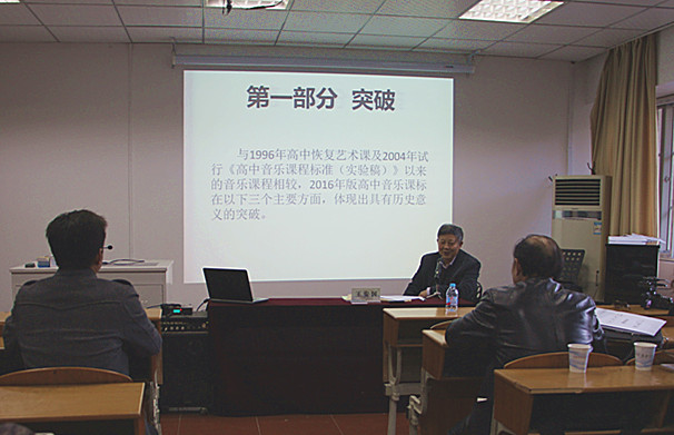 在讲座伊始,王教授首先说明了本次音乐课标修订的背景和意义,并指出作为高校师范专业的教育工作者,都是教学改革的实践者,应积极了解新课标改革的理念及内容。随后,王教授对2016版高中音乐课标进行了详细的解读,指出了新课标的三个“突破”,即:以知识为核心的团队建设转移到培养员工的核心素养上、音乐课程教学空间及员工音乐学习选择空间的双向拓展、分类分级的教学组织形式和分段分级的学业质量要求;并提出了面对新课标,涉及到教育实施主体、课程资源、音乐教研、义务教育和高等教育等所面临的三个挑战,即:教育观念的转变、深入领会音乐学科核心素养内涵以及按核心素养要求调整教学计划。王教授还阐述了中员工核心素养的三大内涵--“文化基础、自主学习、社会参与”以及高中音乐学科的核心素养--“审美感知、艺术表现、文化理解”,并解读了每个方面的具体要求。