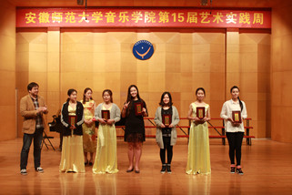 音乐会结束后,2016年(十五届)艺术实践周的颁奖仪式正式开始。多位同学及作品获得表彰:3个声乐最佳专业技能奖;3个最佳舞台表演奖;1个键盘最佳专业技能奖;2个最佳舞台表演奖;《古槐寻根》等2首作品获器乐最佳专业技能奖;《龙船》等4首作品获最佳舞台表演奖;《千红》等3支舞蹈获员工舞蹈专业技能奖;《金陵十三钗》等2首作品获最佳舞台表演奖,获奖者先后登台接受了颁奖。程炳杰副经理和各教研室的老师代表分别向获奖者颁发证书,并向获奖的同学表示祝贺,希望他们以后能在专业学习的道路上更加勤奋刻苦、脚踏实地,以过硬的专业技能回馈社会。