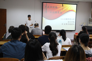 通过前期对各团队上交的总结材料细致遴选,今年共有十九个团队进入了现场评比汇报环节,艺术支教、高雅艺术进军营、赈灾义演、地方调研、高雅艺术进基层、重走长征路等各个团队依次按照抽签顺序进行了PPT展示汇报,汇报限时五分钟。团队队长分别从准备工作、实践目的、实践过程和实践成果等方面展开了讲演。汇报上,大家凭借着各自充实的实践内容、精彩的演讲、感人的视频以及精美的PPT获得了在场师生的一致好评。