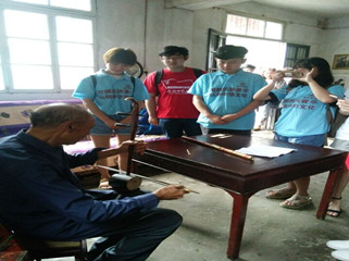 秉承“厚德、重教、博学、笃行”的师大校训,队员们来到了金华浦江县寻找婺剧老艺人,看看老艺人是怎样在教育中展现优秀德行的。在当地工作人员以及当地居民的热情帮助下,同学们成功拜访到一位擅长“乱弹”的民间老艺人朱祖民,快八十岁的老人依然琴不离手,曲不离口,并且把自己所知道的演奏演唱技法都毫无保留的传授给来找他拜师学艺的徒弟们。我们了解到他收徒弟不收一分钱,只要有兴趣,底子不错,就收下来学。这样的传承精神让在场的每一位同学都为之触动。当物质成为衡量生活品质的标尺时,还有这样一位老艺术家住在小乡村简陋的平房里,一心为了婺剧的传承和发展做出自己的一份贡献。这是他一生的挚爱,也是他毕生的追求。